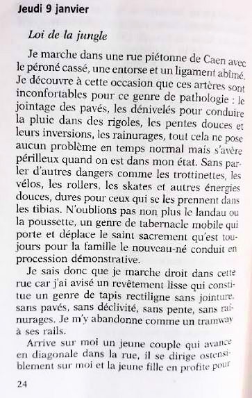 Désolée de devoir être bousculée sur les trottoirs quand je balade le chien Woody et pour cause, je suis devenue une hyppopodame, je plaisante mais j' en suis à quelques kilos prêts - je m' abstiendrai de vous donner le chiffre, rond, pour ceux qui ne m' ont pas vue depuis des lustres vous seriez affligés. J' essaie en cas de rencontres inopinées, de faire au mieux en me rabattant côté mur, ou en descendant du trottoir pour laisser passer les gens pressés le nez encore et toujours collés sur leur téléphone ce qui ne les empèche pas de me frôler au mieux, de me bousculer au pire, sans m' adresser un merci ou un mot d' excuse. Je dois être transparente pour eux, je n' existe pas !